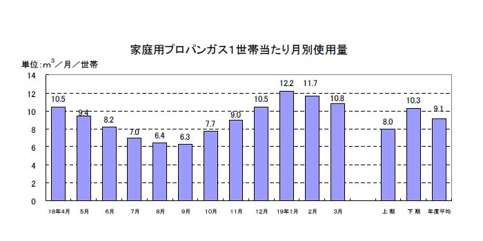 【月別使用量】家庭用プロパンガス 1世帯あたり