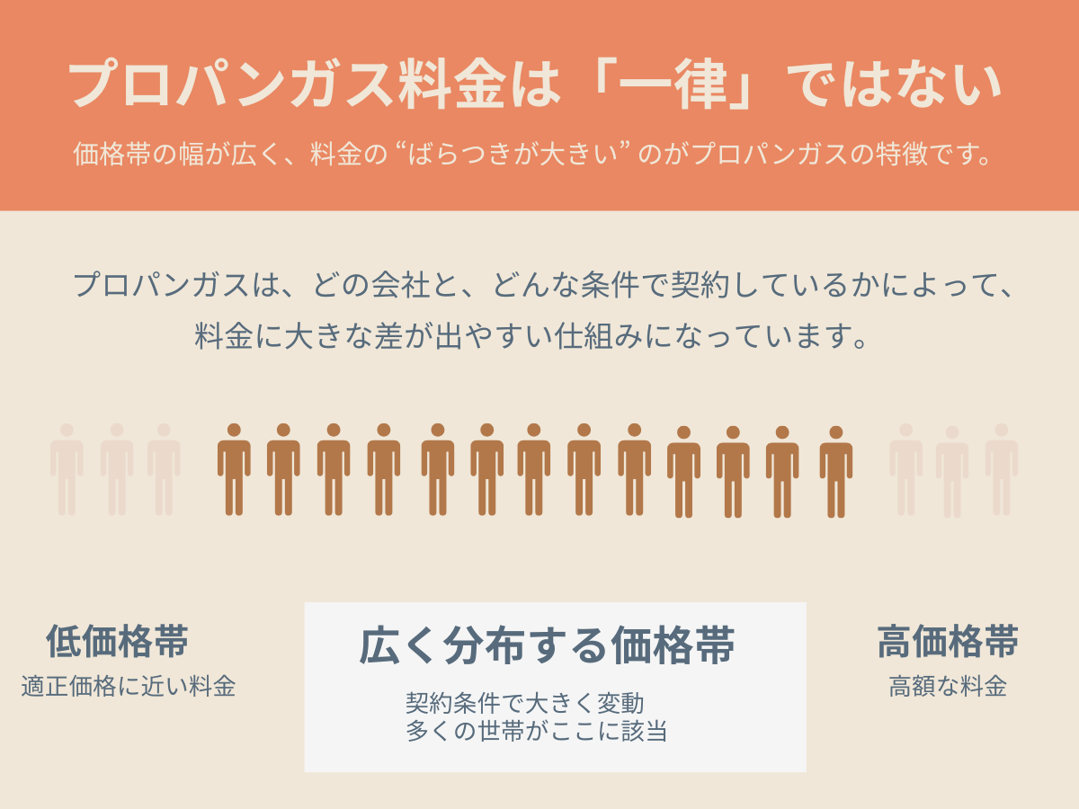 プロパンガス料金は分布の幅が広く、